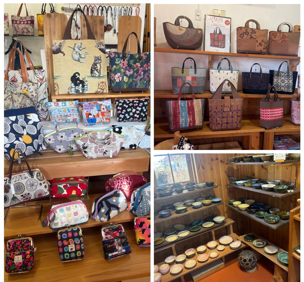 帯や柿渋などを使って布の組み合わせやミシンキルトなどで、世界にたった一つだけのバッグやポーチなどを作っています。